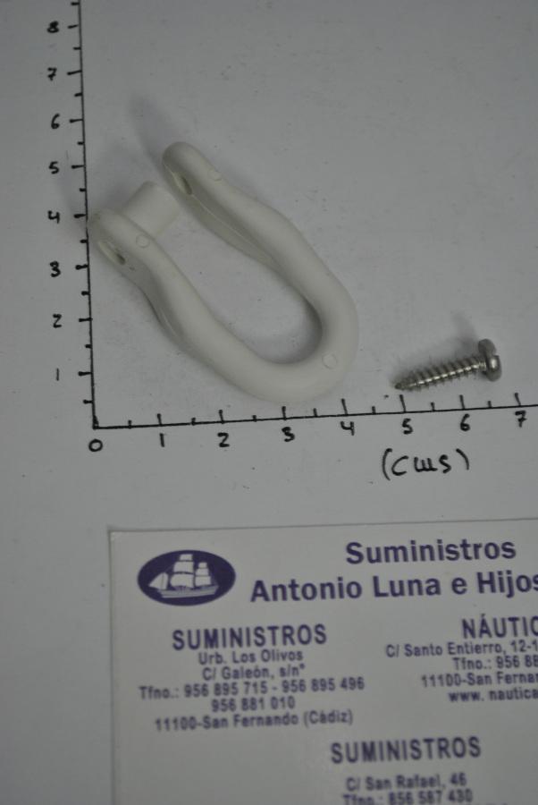 Grillete de nylon blanco de 51mm de longitud, con tornillo (incluido).