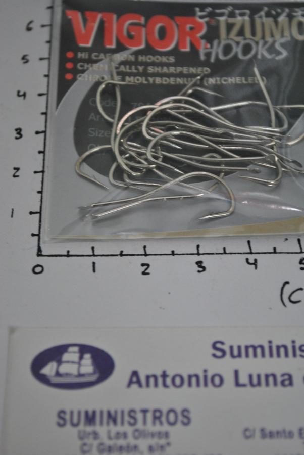 Batido, reforzado. Forma particular con doble pico de loro, muy eficaz para retener el cebo durante el lanzamiento.