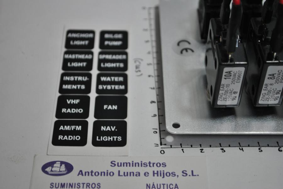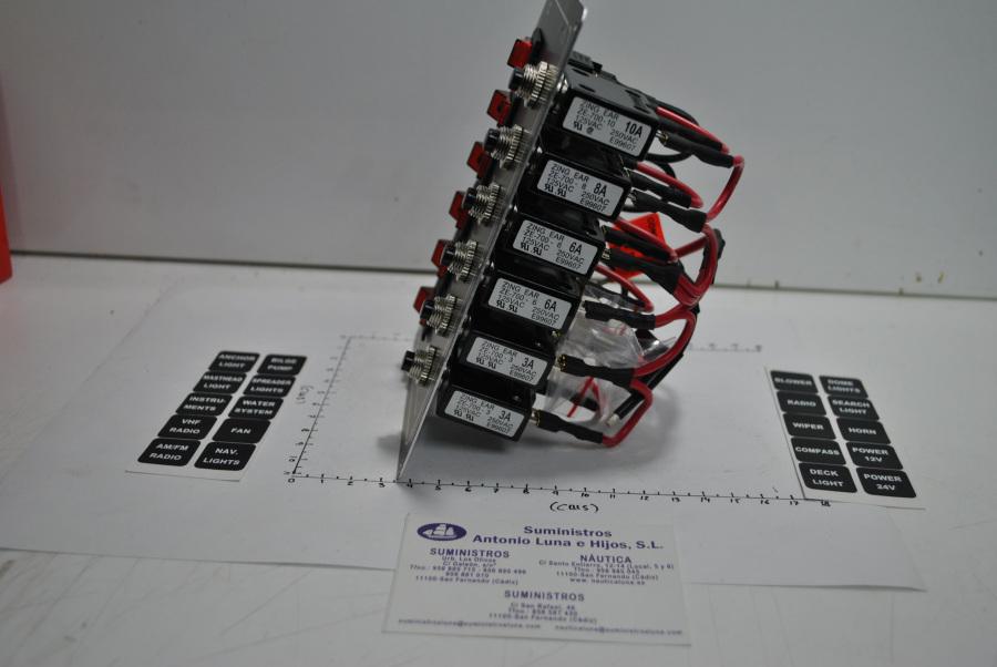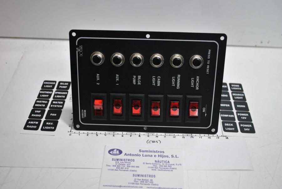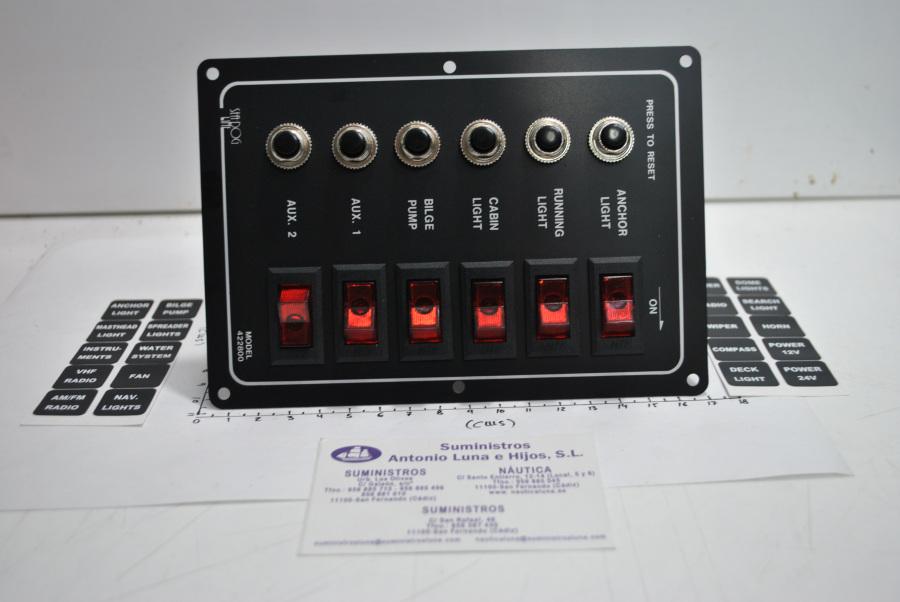 Panel eléctrico de 12V de 6 interruptores con luz y 6 magnetotérmicos, de la marca AAA (ref.10069)